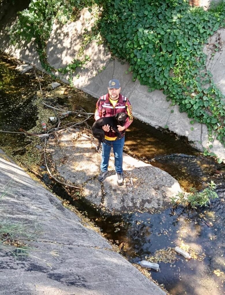 Mediante una denuncia ciudadana, se alertó al 911 sobre la presencia de un perrita negra en el interior de un arroyo.