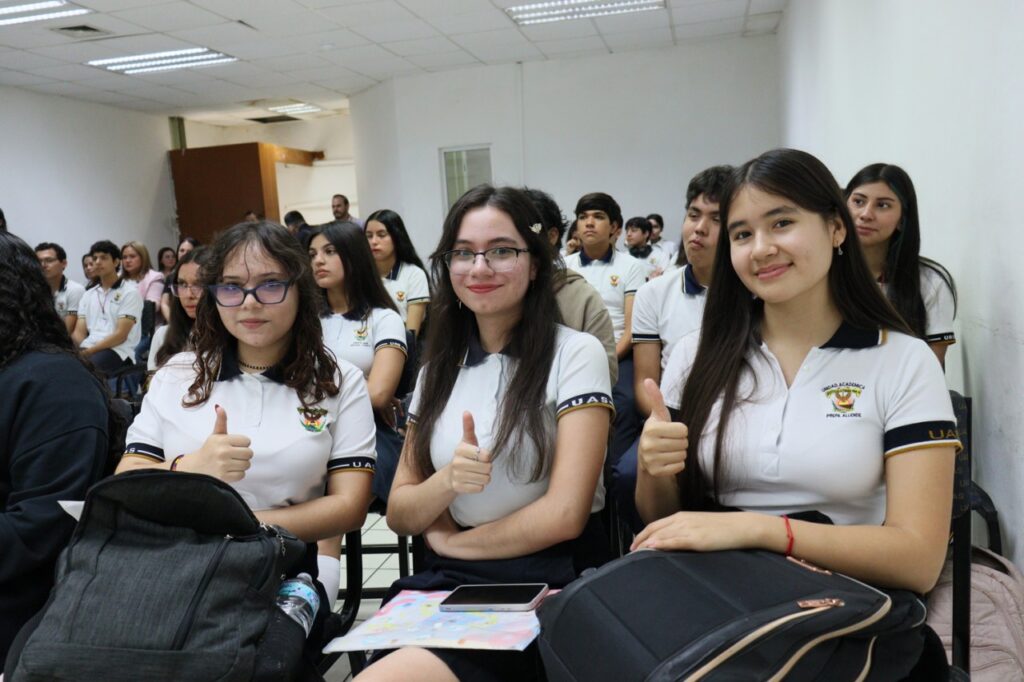 “De hecho también es importante informarles que, dentro de la Universidad se tiene la Facultad de Ciencias de la Tierra y el Espacio, donde ellos pueden acercarse para que se les oriente y, sobre todo, se involucren en este maravilloso mundo que es la ciencia, en la Astronomía y que vayan echando a volar su imaginación, para que al mismo tiempo lo relacionen con las diversas investigaciones que se desarrollan y que esto les abra su campo de aspiraciones y puedan elegir una carrera alineada a sus intereses”, enfatizó.