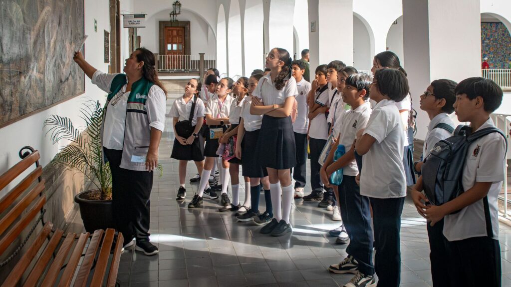 Culiacán, Sin., 22 de octubre de 2025. — Con el propósito de acercar a las nuevas generaciones al patrimonio histórico y al funcionamiento del gobierno local, la Dirección de Educación implementó el programa “Conoce tu Ayuntamiento”, en esta ocasión con la participación de alumnos de la Escuela Primaria Rubén Darío.