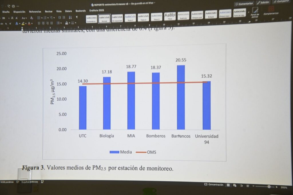“En estos seis meses hemos descubierto que el cincuenta por ciento de los días observado de acuerdo a la Organización Mundial de la Salud (OMS) rebasa esta norma que equivale a los 15 microgramos por metro cúbico de contaminante, es decir, el cincuenta por ciento de los días desde diciembre a la fecha hemos rebasado la norma de la OMS”, explicó.