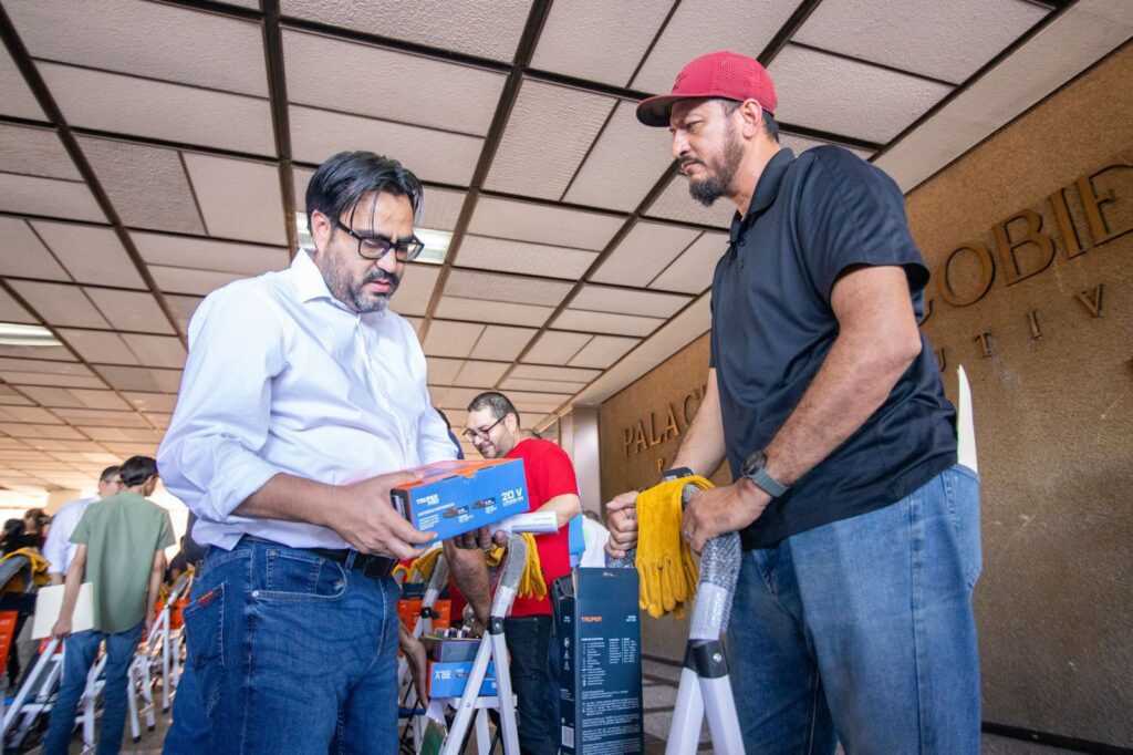 Con esta entrega, los apoyos en la capital se distribuyeron de la siguiente manera: 64 carpinteros recibieron 256 equipos, 52 electricistas fueron beneficiados con 416 equipos, y 34 herreros obtuvieron 68 equipos, destacando la participación de mujeres canalizadas a través del Centro de Justicia para las Mujeres.