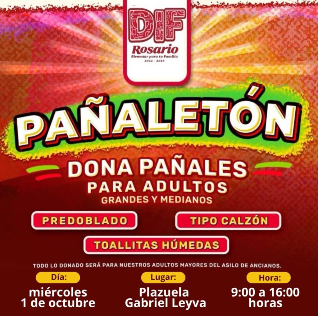 El Gobierno de Rosario a través del Sistema Dif Municipal invita a la ciudadanía a participar en el Pañaletón 2025, que se realizará el día de mañana 01 de octubre.