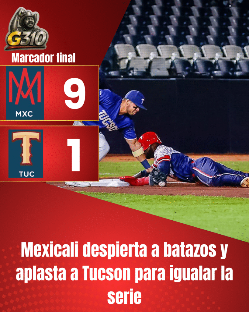 Mexicali, Baja California — Con una exhibición ofensiva dominante y una noche de 13 hits, los Águilas de Mexicali volaron alto en Tucson y empataron la serie tras imponerse con autoridad 9-1 al conjunto local. La velocidad de Estevan Florial, el bate oportuno de Yadir Drake y un pitcheo sólido fueron la fórmula del triunfo cachanilla.